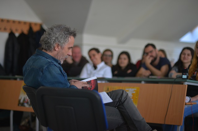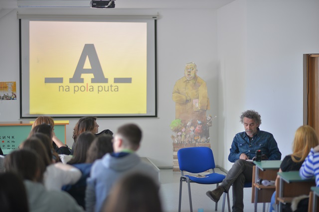 Stigavši iz Beča, održao je predavanje o književnosti i promeni. Učenici su rado diskutovali o svojim percepcijama promene, bilo lične, političke, socijalne…