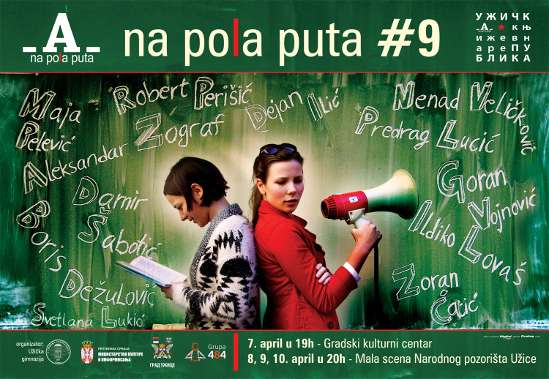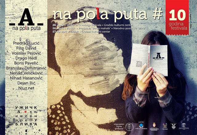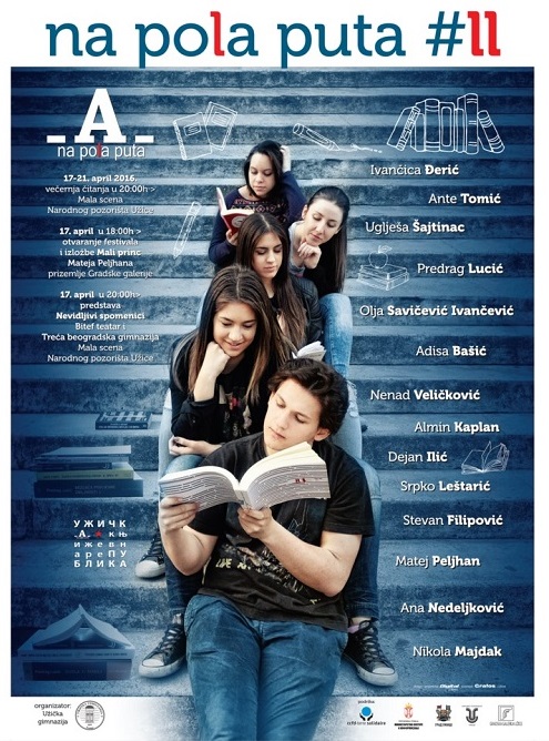 Dragi prjatelji srećni smo što možemo da vas obavestimo da dvanaesti književni festival Na pola puta počinje 23. aprila. Od 23. do 27. aprila. Svi ste dobrodošli u Užičku gimnaziju i na malu scenu Narodnog pozorišta Užice.